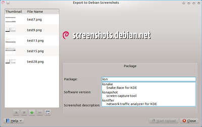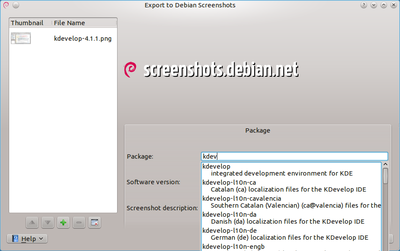 Here is the resulting Debian Screenshots plugin, as you would use it in KSnapshot:
